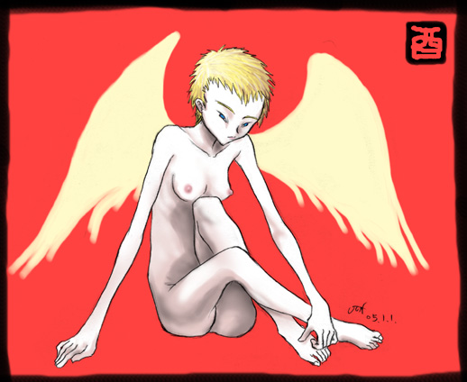 酉年ということで鳥娘です。天使みたくなっちゃうなと思い、ベリショーにして ひな鳥とゆーかヒヨコっぽくしました。でもモデル体型。浮世絵みたく細い目と 白い肌がお気に入り。でもエロがちょっと足りないかもね。課題です。